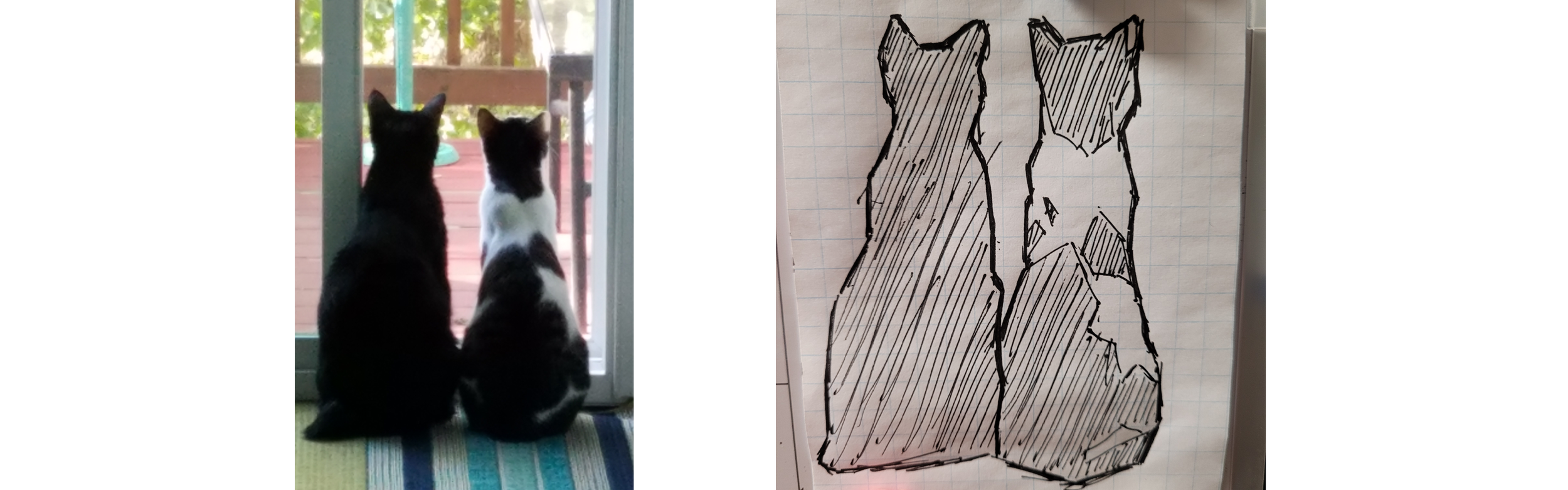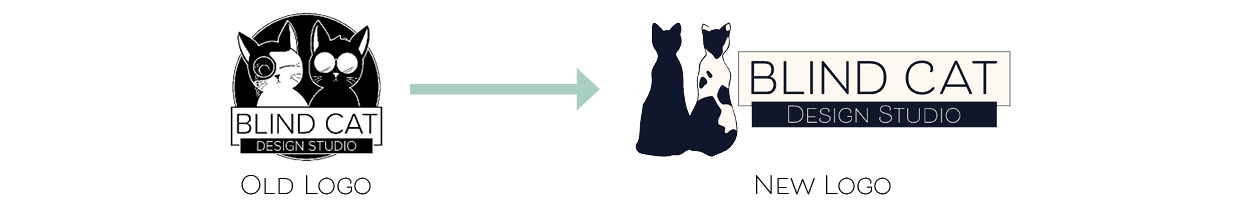 I took a photo of Holmes and Watson sitting at my back door listening to the squirrels play around outside one summer. I really loved how sweet this photo was and decided to make it the inspiration for the new logo. Two blind cats sitting together. I kept the layout of the text from the original logo but updated the font. I also moved from black and white to a deep dark blue and a light cream color.