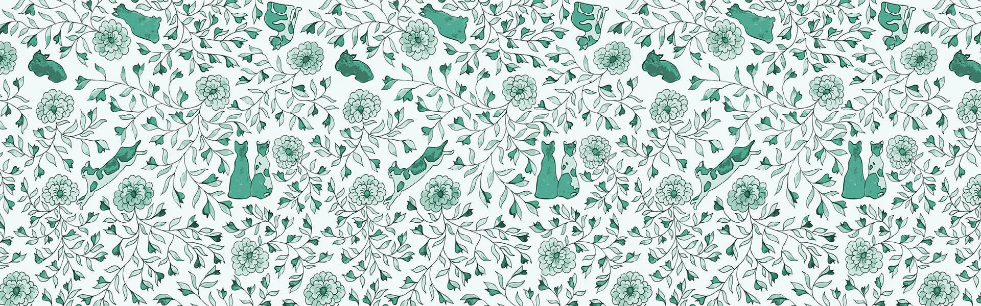 I also thought about the fact that I’m trying to establish myself as a pattern designer and I decided to create a brand pattern. Why not? It’s full of curling flowers with illustrations of cats mixed in throughout. Just think of how great it will be to use this pattern as a background on my website or on packaging for products.